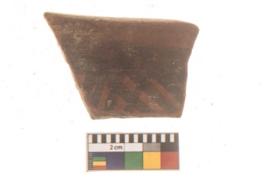 | Description / विवरण | Specimen of Potsherd with black decorative linear painting . |