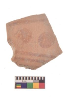 | Description / विवरण | Specimen of red on red ware with decorative Horizontal lines with circles in between geometric painting. |