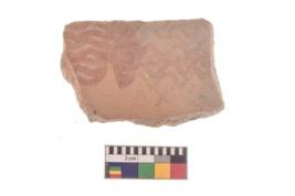 | Description / विवरण | Specimen of red on red ware with decorative Horizontal wavy lines geometric painting. |