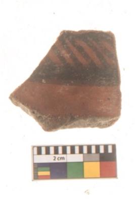 | Description / विवरण | Specimen of Potsherd with black decorative linear painting . |