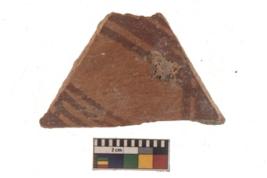 | Description / विवरण | Specimen of black on red ware with black decorative Diamond lattice design geometric painting. |