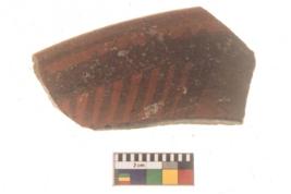 | Description / विवरण | Specimen of Potsherd with black decorative linear painting . |