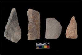 | Description / विवरण | There are n 4 flakes tool; there are flakes tool with prominent flaking marks. It made up of a large flakes with sides trimmed. It is rectangular in shaped. |