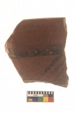 | Description / विवरण | Specimen of Potsherd with black decorative linear painting . |