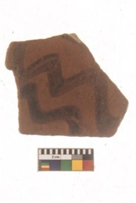| Description / विवरण | Specimen of a Potsherd with black decorative geometric painting on it.It is set of two zigzag bands. |