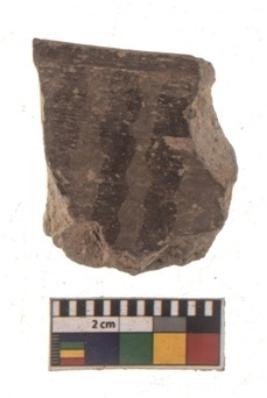 | Description / विवरण | Specimen of black on red ware with black decorative Vertical wavy lines geometric painting. |