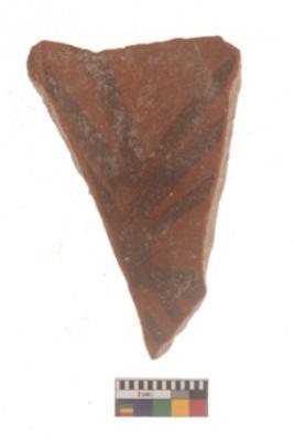 | Description / विवरण | Specimen of black on red ware with black decorative Intersecting lines geometric painting. |
