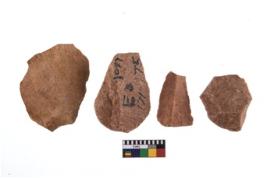 | Description / विवरण | There are n-4 of intact cores made up of Quartzite. There are multidirectional irregular dominant scar pattern on both dorsal and ventral face of the cores. |