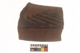 | Description / विवरण | Specimen of Potsherd black on red painted pottery. It is fine fabric in sharp contrast with painted design are executed in black pigment. |