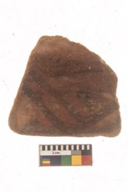 | Description / विवरण | Specimen of Potsherd with black decorative linear painting . |