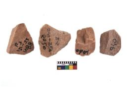 | Description / विवरण | There are n-4 of intact cores made up of Quartzite. There are multidirectional irregular dominant scar pattern on both dorsal and ventral face of the cores. |