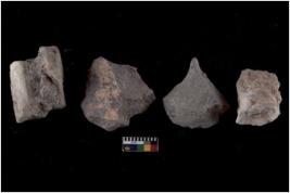 | Description / विवरण | There are n 4 flakes tool; there are multidirectional irregular scar pattern on them; made of short flakes and all four have tapering edges. |