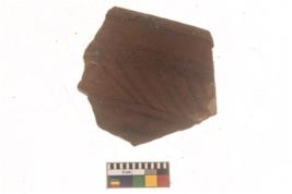 | Description / विवरण | Specimen of Potsherd with black decorative linear painting . |