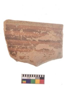 | Description / विवरण | Specimen of black on red ware with black decorative Horizontal lines geometric painting. |