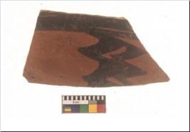 | Description / विवरण | Specimen of a Potsherd with black decorative geometric painting on it.It is set of two zigzag bands. |