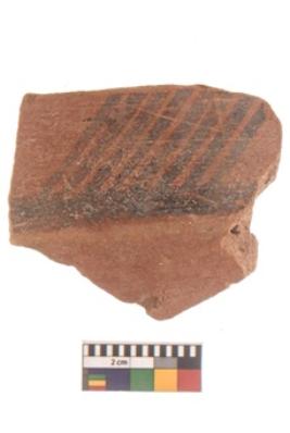 | Description / विवरण | Specimen of black on red ware with black decorative Parallel horizontal lines geometric painting. |