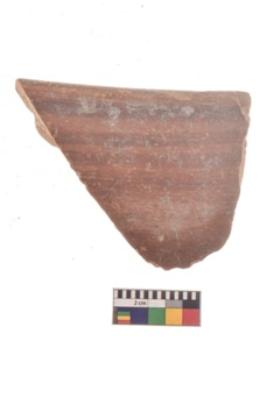 | Description / विवरण | Specimen of black on red ware with black decorative Horizontal lines geometric painting. |
