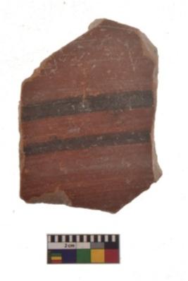 | Description / विवरण | Specimen of black on red ware with black decorative Horizontal lines geometric painting. |