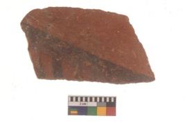 | Description / विवरण | Specimen of black on red ware with black decorative Small vertical lines geometric painting. |