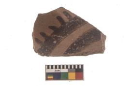 | Description / विवरण | Specimen of black on red ware with black decorative Parallel circles with small projections geometric painting. |