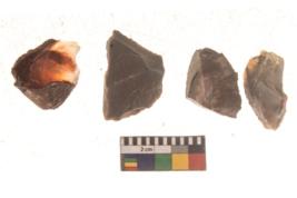 | Description / विवरण | There are n 4 flakes tool; there are flakes tool with prominent flaking marks. It made up of a large flakes with sides trimmed. |