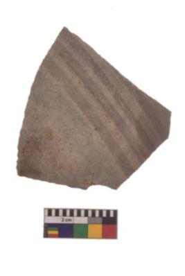 | Description / विवरण | Specimen of black on red ware with black decorative Parallel vertical lines geometric painting. |