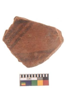 | Description / विवरण | Specimen of black on red ware with black decorative Intersecting horiontal lines geometric painting. |