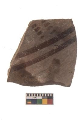| Description / विवरण | Specimen of black on red ware with black decorative Parallel lines with dotted lines above geometric painting. |