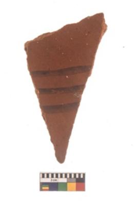 | Description / विवरण | Specimen of black on red ware with black decorative Horizontal lines geometric painting. |