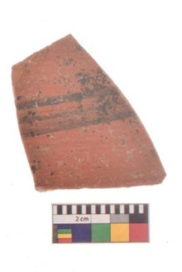 | Description / विवरण | Specimen of black on red ware with black decorative Horizontal lines geometric painting. |