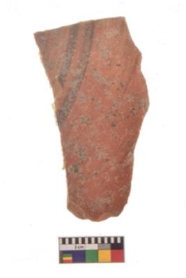 | Description / विवरण | Specimen of black on red ware with black decorative Concentric lines geometric painting. |