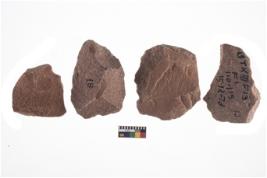 | Description / विवरण | There are n-4 of intact cores made up of Quartzite. There are multidirectional irregular dominant scar pattern on both dorsal and ventral face of the cores. |