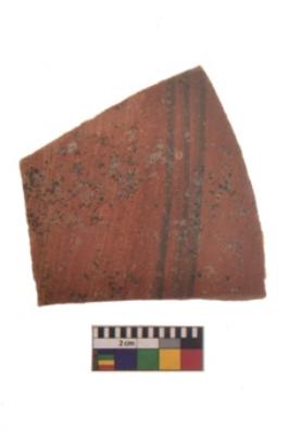 | Description / विवरण | Specimen of black on red ware with black decorative Vertical parallel lines geometric painting. |