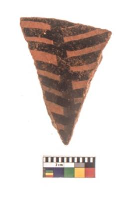 | Description / विवरण | Specimen of black on red ware with black decorative Leaf like pattern geometric painting. |