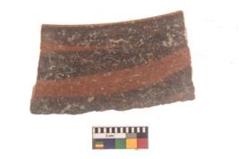 | Description / विवरण | Specimen of black on red ware with black decorative Concentric lines geometric painting. |