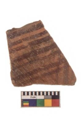 | Description / विवरण | Specimen of black on red ware with black decorative Horizontal lines geometric painting. |