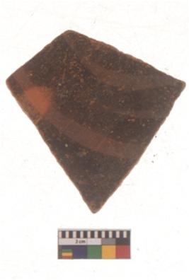 | Description / विवरण | Specimen of black on red ware with black decorative Concentric circles geometric painting. |