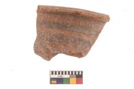| Description / विवरण | Specimen of black on red ware with black decorative A horizontal band with leaf like design below geometric painting. |