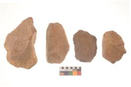 | Description / विवरण | There are n 4 flakes tool; there are multidirectional irregular scar pattern on them; made of long flakes and all four have tapering edges. |
