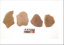 | Description / विवरण | There are n 4 flakes tool; there are multidirectional irregular scar pattern on them; made of long flakes and all four have tapering edges. |