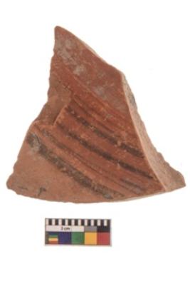 | Description / विवरण | Specimen of black on red ware with black decorative Concentric circles geometric painting. |