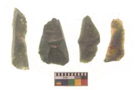 | Description / विवरण | There are n 4 flakes tool; there are multidirectional irregular scar pattern on them; made of long flakes and all four have tapering edges. |