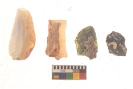 | Description / विवरण | There are n 4 flakes tool; there are multidirectional irregular scar pattern on them; made of long flakes and all four have tapering edges. |