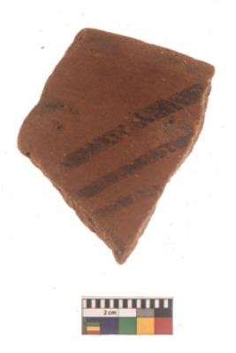 | Description / विवरण | Specimen of black on red ware with black decorative Parallel lines geometric painting. |