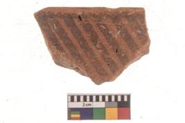 | Description / विवरण | Specimen of black on red ware with black decorative Parallel lines geometric painting. |