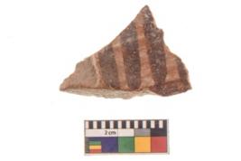 | Description / विवरण | Specimen of black on red ware with black decorative Vertical lines nature painting. |
