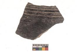 | Description / विवरण | Specimen of red ware, with decorative incisions Horizontal lines . |