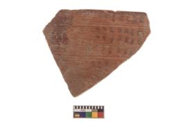 | Description / विवरण | Specimen of black on red ware with black decorative Vertical dotted lines geometric painting. |
