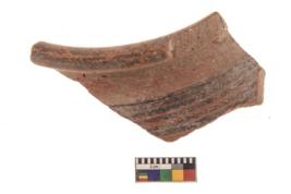 | Description / विवरण | Specimen of black on red ware with black decorative Horizontal lines geometric painting. |
