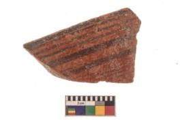| Description / विवरण | Specimen of black on red ware with black decorative Horizontal lines geometric painting. |